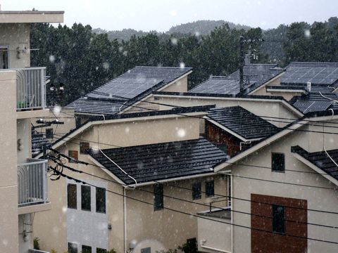 夕方からは雪まじりの冷たい雨天気予報通りに夕方からは雪交じりの冷たい雨が、内陸部は雪が降り始め夕方には積雪が始まっている。 |