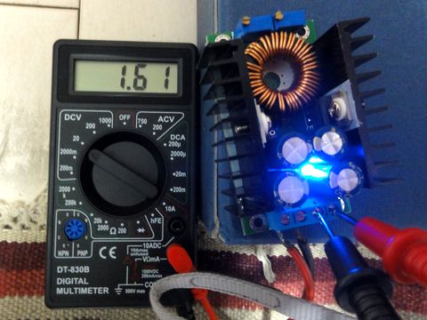 ダウンコンバータの動作確認鳩時計の電池(単一・1本)の代替として5Vアダプタからの降圧を検討、停電対策も必要なのでバッテリを付けたら元の木阿弥の ような気もして。 |