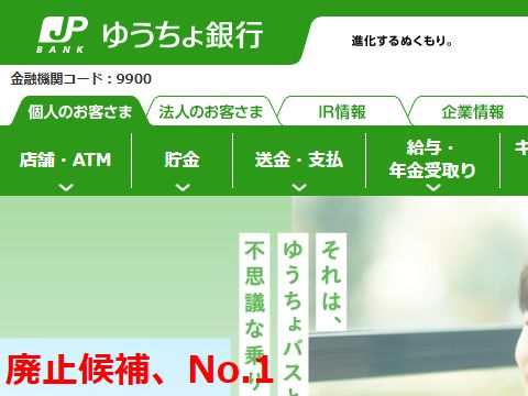 ゆうちょ銀行は解約完了20年以上利用した口座だが今やネット銀行が主流の時代に何とも不正ばかり続く日本郵政の銀行は時代遅れ。 金利も都市銀行並みの低さだし、真っ先に解約するのは当然の結果。次は楽天銀行を解約予定。 |