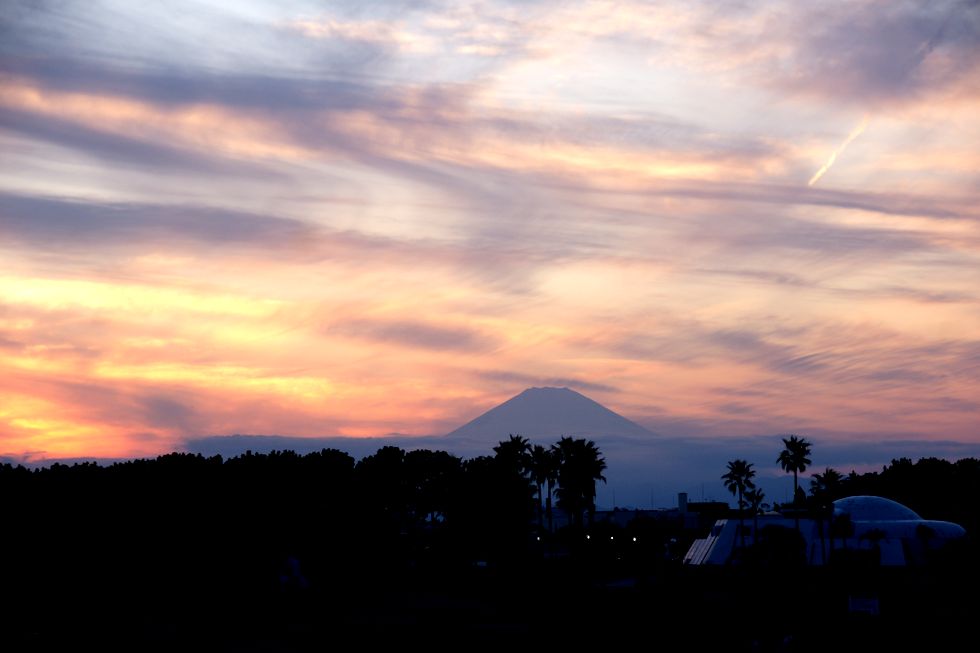 夕方の綺麗な富士山、もうちょっと夕焼け期待