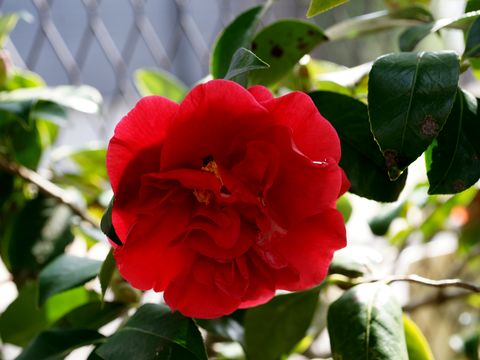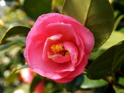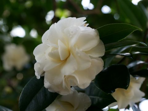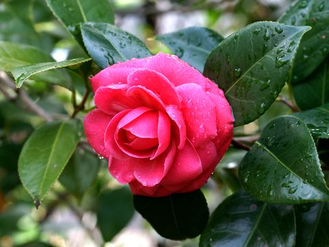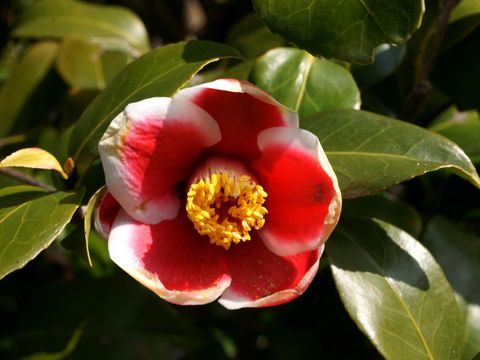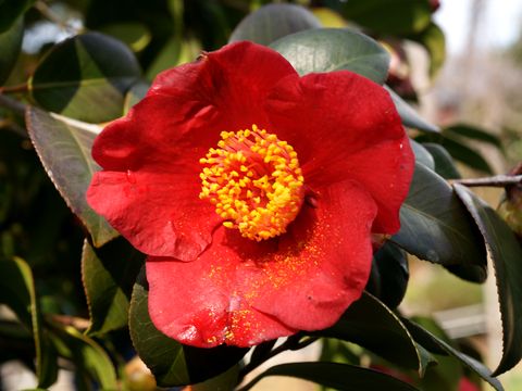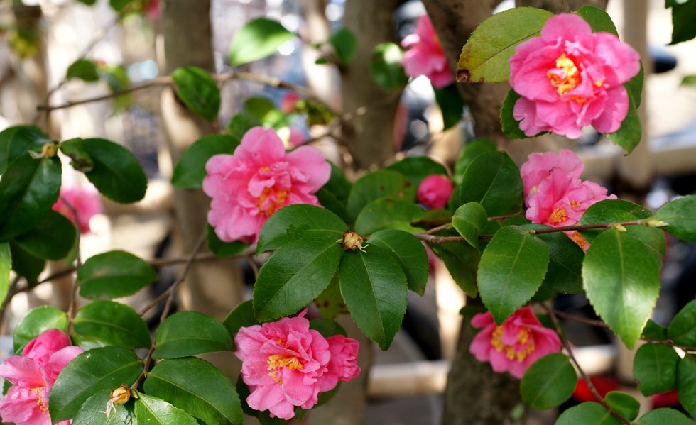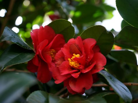 多数の椿の花が満開