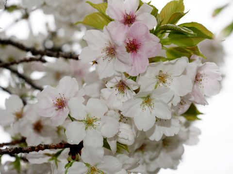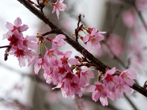 雨のなか開花が進んでいる帰路は海浜公園内の桜も観てきたがもう散り始めの木もある。 |