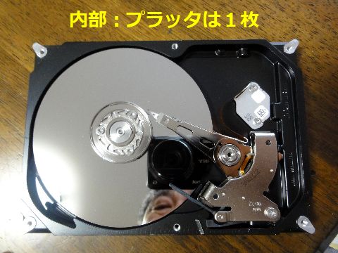 破損HDD、開けてみた全く回転しないHDD、基板には見て分かる損傷はなし、内部も見て分かる破損なし。 電源を繋ぐとすぐ落ちるので基板故障は間違いなさそう、NASが壊れてHDD破損に繋がったのか、あるいは HDD破損でNAS電源回路も破損なのかは判明せず。 |