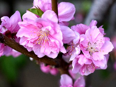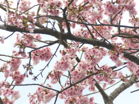 近所の桜の花早咲きの桜が満開(老人ホームの庭先)、中学校の前はもう散りはじめ。 |