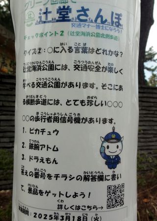 「辻堂さんぽ」が始まった、1−6番までクリア朝一番で1と2を撮影、3は一昨日、今日の夕方の散歩で4、5(日の出橋)、6(作橋)を回って6番まで完了、あと8ポイント。 |