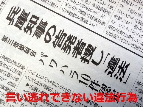 兵庫県知事のパワハラ問題、まだ逃げる弁護士で校正された第3者委員会の調査結果が出て、10件のパワハラを認定、告発者調査の違法性を認定。 それでも「適法だ」と言い張る知事、こんな知事に育てた?甘やかしの出向先の地方自治体の責任もあるけど。 |