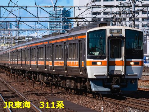 消えゆく:JR東海311系JR東海オリジナル車両の初代(211系5000番台は国鉄設計)車両、中身は直流モータ使用の211系設計と大きくは変わっていないが座席が転換シート になるなど快速電車用になっている点もあり、つい最近211系が全車廃車になったばかり(一部は三岐鉄道へ譲渡)。 |