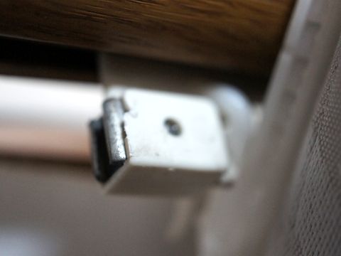 カーテン吊り金具?の修理中央部の磁石付きの吊り具が光劣化でプラスチック部が割れて磁石とサイドの2つの金具が落下、最初は落ちていた部品が何か解らずだったが 2つ目、3つ目の落下部品が見つかり判明。ばらばらになった部品を接着剤で一体化後にもとのケースへ接着剤を付けて押し込んで完了。 |