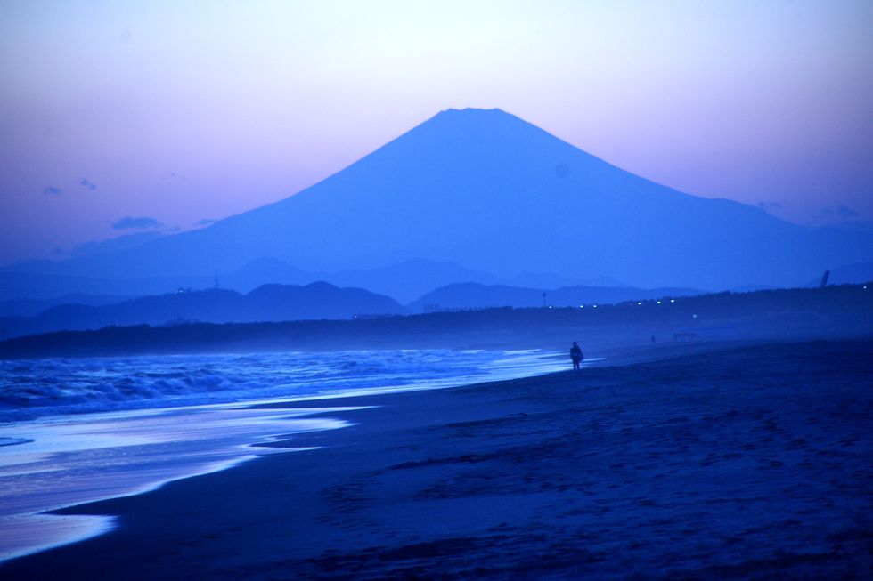 青い富士山夕景@辻堂海岸ホワイトバランスを敢えて「白熱灯」に変えて青い富士山を撮影、実際の富士山はもっと橙色に近い。 使用カメラ:SONY α900+TAMRON 28-200mm Zoom |