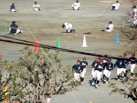 朝の空は霞んでもやっとそて富士山は見えることは見えるが霞が掛かってもやもや、近所の小学校のグラウンドでは小学生の野球チームの練習中。 |