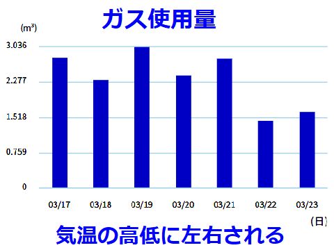ガス検針データは順調のようガス使用量が日毎の変動が大きいが、これは水温に関連するよう、一番ガスの消費量が多いのは風呂+床暖房だから。 風呂以外ではキッチンのレンジしかない。 |