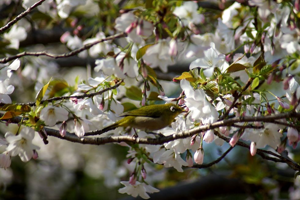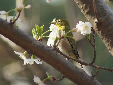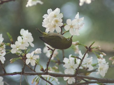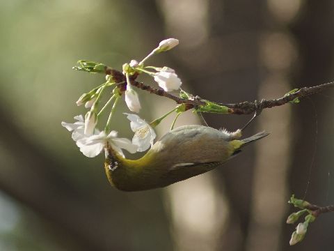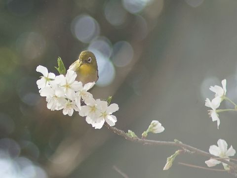 朝から桜とメジロを撮影に公園へ