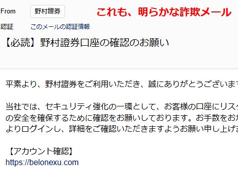 詐欺メールが良く来るがまあこの2件は発信元アドレスを見ればすぐ詐欺と分かるレベルのインチキメール、でもヤフーメールのチェックには掛かって いないのは何故?さっそく「詐欺メール」の登録をしておいたが。 |
