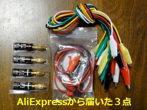 AliExpressへ注文した3点が届いたこの3点で合計750円、送料無料!クリップコードは接続部を調べると押さえているだけで半田付けはしてない 手抜き構造、すぐに接触不良になりそう。半田付けをしておこう。 |