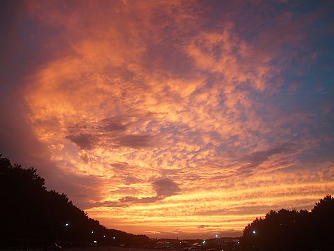 普通の夕景から真っ赤な夕焼けに