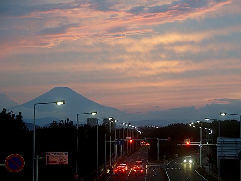 富士山の夕景雲が多くて富士山は見えず、日没後には影富士で見えたが。 |