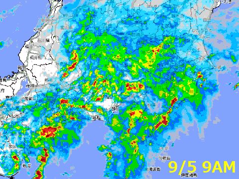 台風15号が通過台風の前の雨の強い領域がある変な台風、新幹線は愛知県・静岡県での雨量規制で2度運転見合わせに。雨の中心が通った 午後3時頃は雷が頻繁に鳴り響き酷い嵐だった(藤沢市から非難指示が出た)が3時半を過ぎると急激に回復、風は強いが空も 明るくなってきた。 |