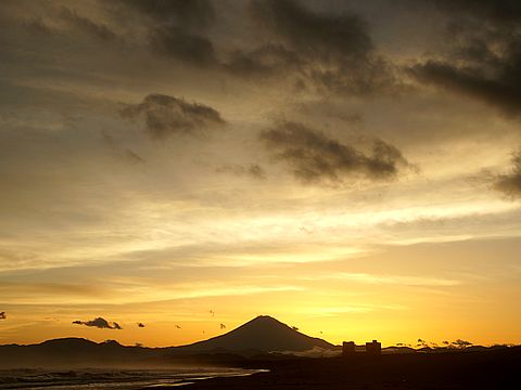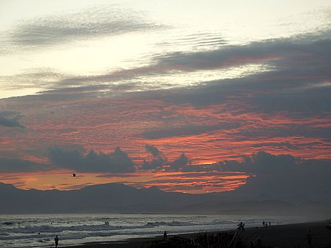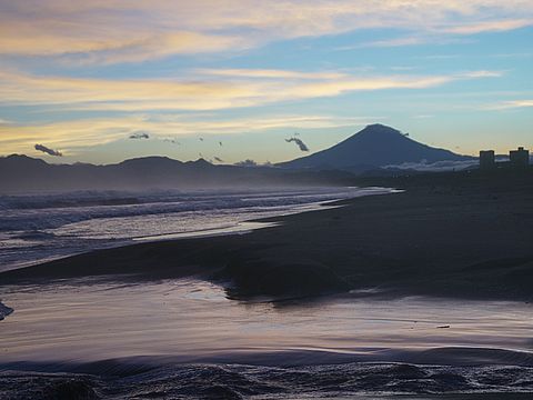 海岸夕景雲が多くて富士山はまったく見えず。 |