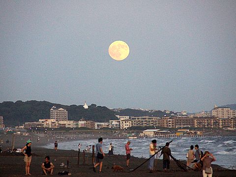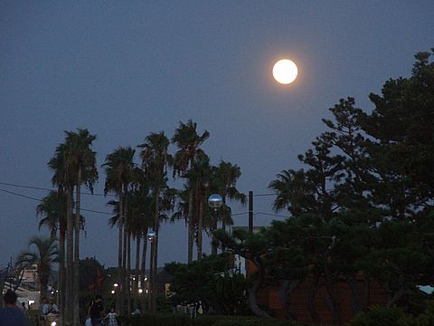 今日は満月、大きな月が登ってきた