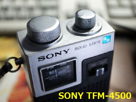 SONY TFM-4500 ヤフオクで売却1973年製(働き始めた年)、SONYが輝いていたころの製品、トランジスタ10石、AM/FM2バンド。 電池(006P)を入れたところ正常に動作した。 |
