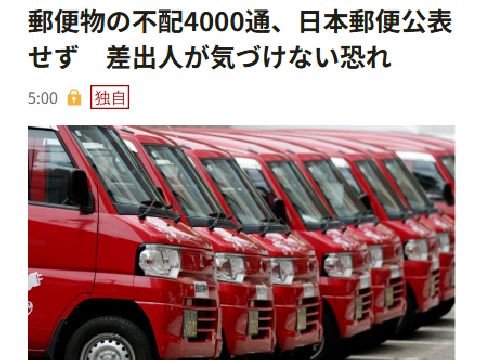 また郵便局の闇、不配郵便物を隠蔽?配達員が配達しないまま放置あるいは廃棄した郵便物を公表せずに誤魔化していたよう、犯罪絡みの場合のみ公表するという勝手な基準。 業務用自動車での点呼不正といい身勝手なインチキばかりの日本郵便、これでは郵便衰退は早まるばかりか。 |