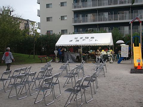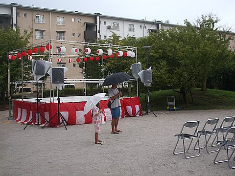 辻堂団地の夏祭り:雨模様だったが団地は自治会が若がえりで積極運営、しばらく無かった夏祭りも開催、多摩美大などから出店も。 雨が降ってきたが日没後には上がったので盛り上がったのかな。 |