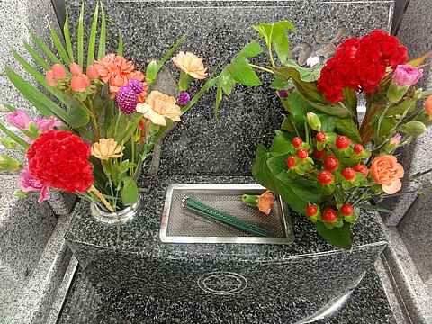 墓参りに(お彼岸前)イオンはお彼岸商品が出ていていつもの100円の花はなし、普通の花を買うとすぐ2000円超過。 |