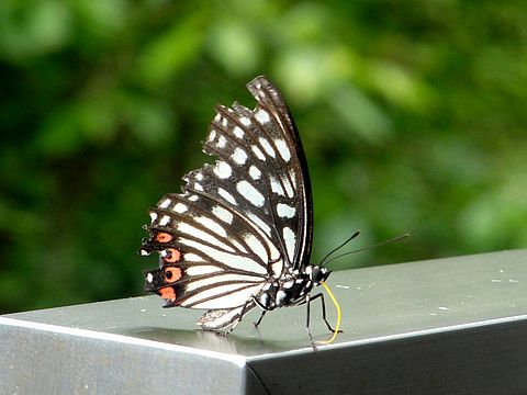 蝶もお疲れ?どんぐりも落ちている