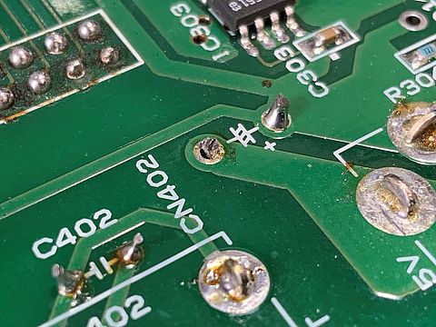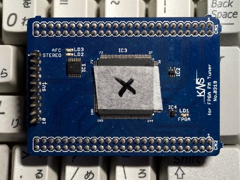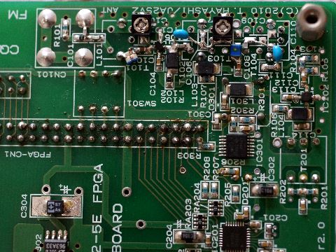 FPGA FMチューナ:調査状況土曜日に林氏へ送ったチューナ基板が届き、今朝から調べ始め、その中間報告が送られてきた。 どうやらFPGAチップそのものの不具合が濃厚、起動しないがチップを冷やすと起動するようになり不具合が 再現できたとのこと。メイン基板のてんぷらハンダも複数発覚(写真添付、修正済)お恥ずかしい限りである。 |