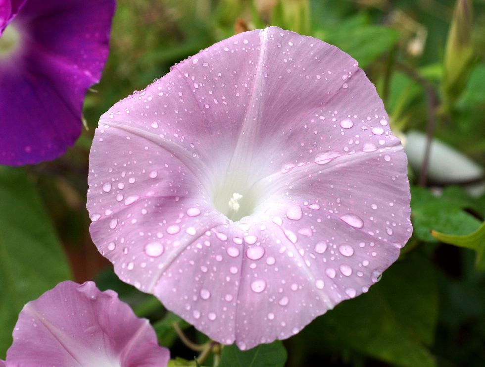 夏の終わりの朝顔午後から降った雨に濡れた朝顔の花。 |