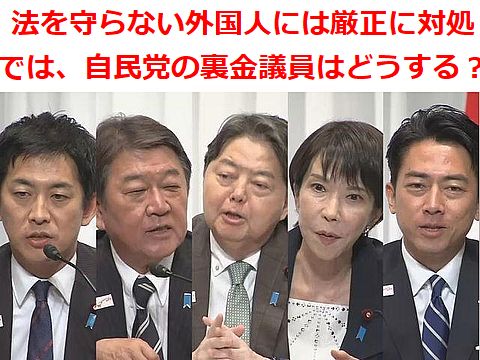 「不法」外国人には厳正に対処、では裏金議員は?どの候補も口をそろえて「不法外国人」には厳正に対処だと、一方の裏金議員の登用については、 「適材適所」だと、身勝手な言い分には呆れるしかない。他人には厳しく身内には大甘の自民党。 |