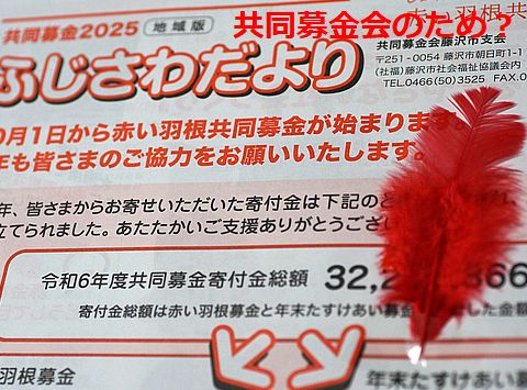 何かピンぼけの赤い羽根募金いつのまにか募金の集金は自治会からまとめて支払い?に変わり、羽だけが配られるという状態に。 もう止めてもいいのではとも思える募金形態、これで食べてる人が居るから止められない? |