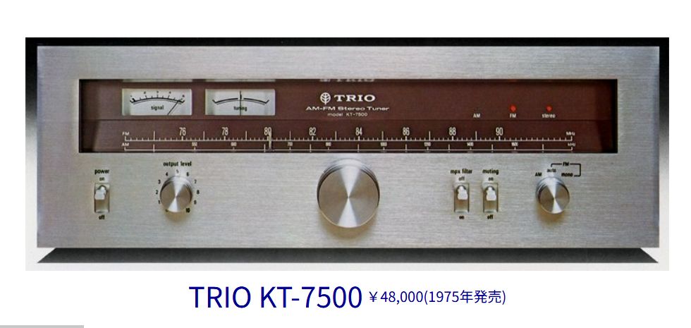 かつての名機?TRIO KT-7500以前、TRIOのFM専用チューナ KT-5500を使っていた時期がある(オークションで売却した)。これはその頃の 中級機のはず。バリコン式なので現在主流のシンセサイザ式と比べ性能には自ずから限界があるが。 |