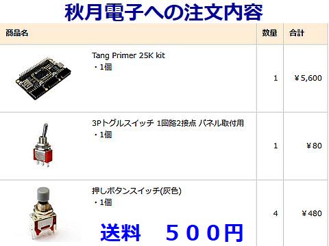 新しいFPGAチップを秋月電子へ注文SoMのチップと書き込み用ボードのセット(5600円)を注文、林氏へ新しい基板配布とFPGAへの書き込みを 依頼した、入手次第送る予定。林氏も名古屋出身のエンジニアだと判明、昔の信越電機が共通の話題である事が判明。 |