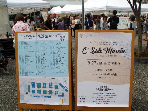 テラスモール湘南のC Side Marche昨日と今日開催のマルシェ、ちょっと洒落たアクセサリや自然食品の店が多い感じ。 |
