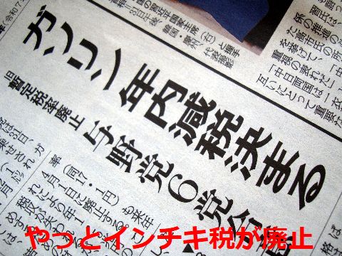 インチキ税がやっと廃止に期間限定で目的税(道路財源)だったのにいつの間にか恒久的な税金に化け、さらに目的税も外して 一般財源にしていたインチキ税がやっとこの年末で廃止に。財務省は代わりになる税金を取ろうとも 目論んでいるよう |