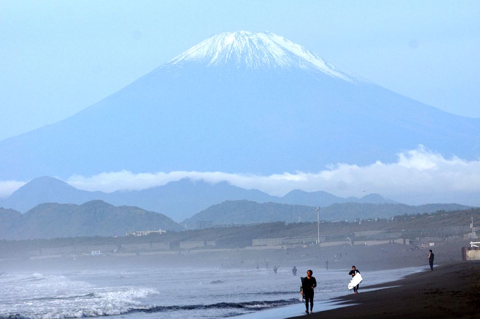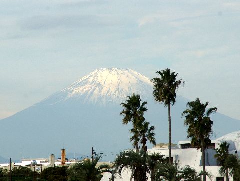 また雪が降った富士山気温が急激に上がって海添いは高湿度に、富士山はもやって見える。使用カメラ:SONY α77+SAL70300 |