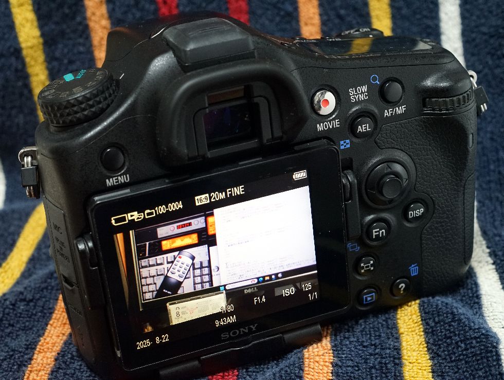 SONY α77、使い始めて2カ月半操作感覚はほぼミラーレス一眼、ハーフミラーでファインダ用画像を撮影し電子ビューファイダへ 表示、従って撮影に必要な情報は全て見えるし水平が出ているかの水準器表示もあっていう事なし。 ボディが大きく重いが、右手で握るグリップ感は最高(ミラーレス機は小さすぎ)。 入手から2カ月半で3518枚撮影、電池も大きく持ちが良い。 |