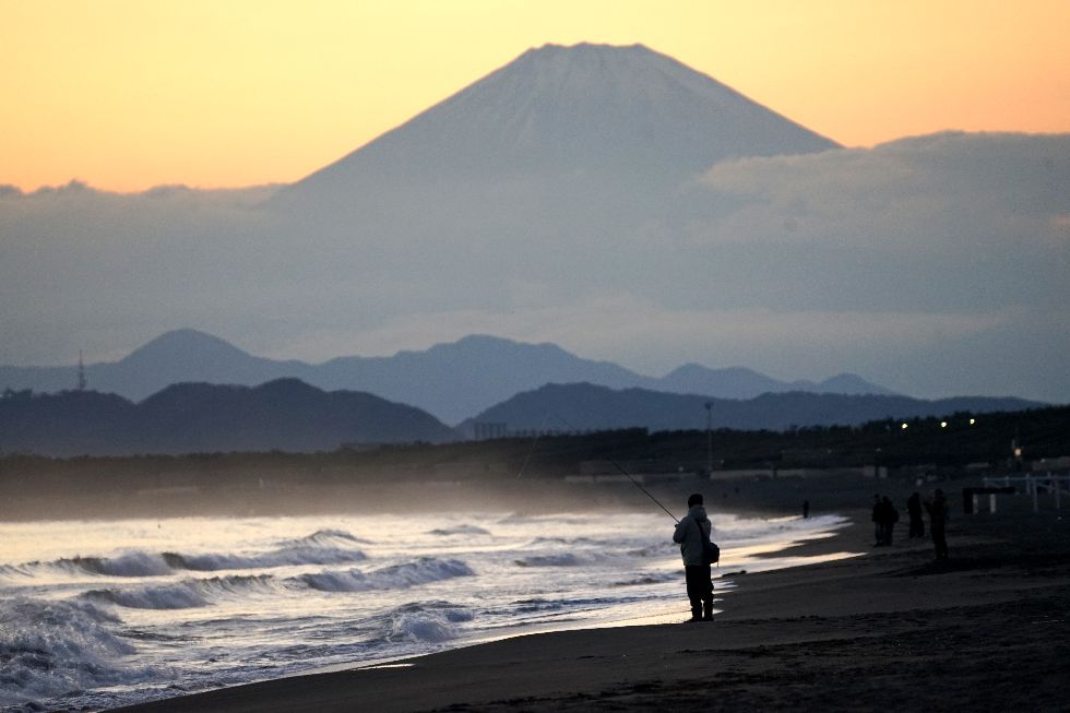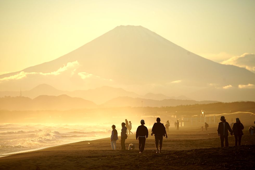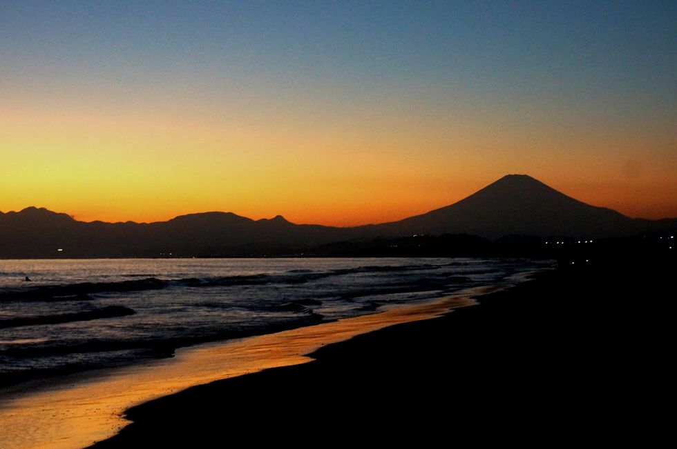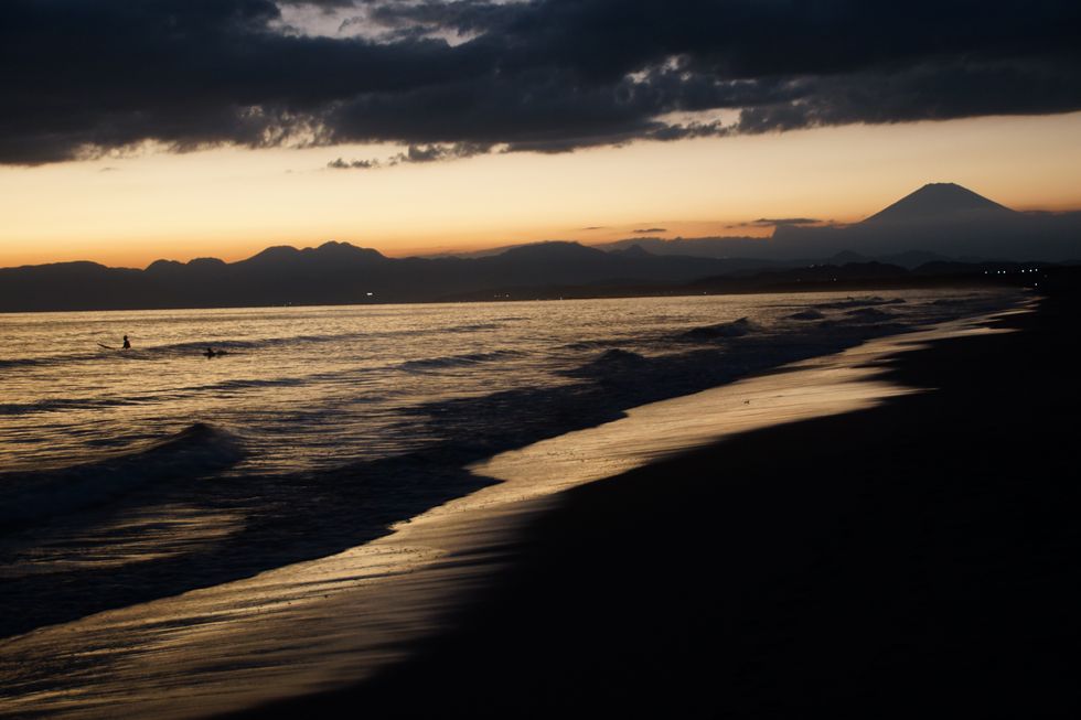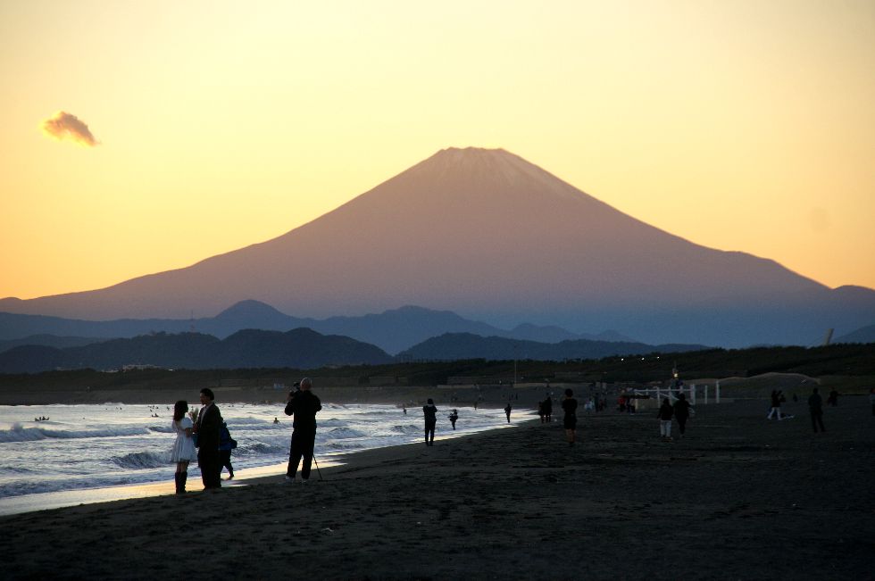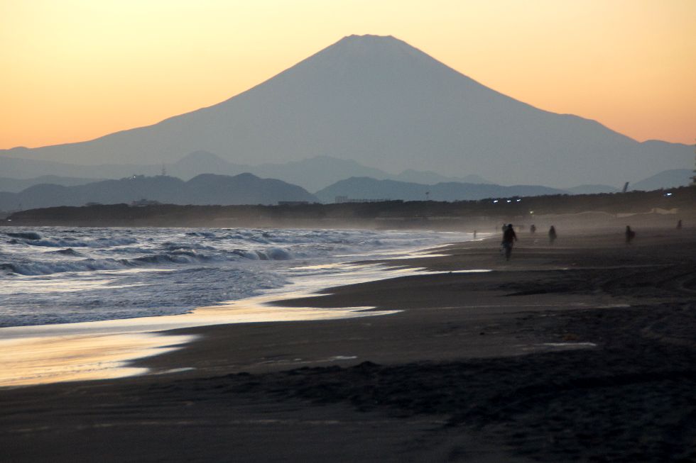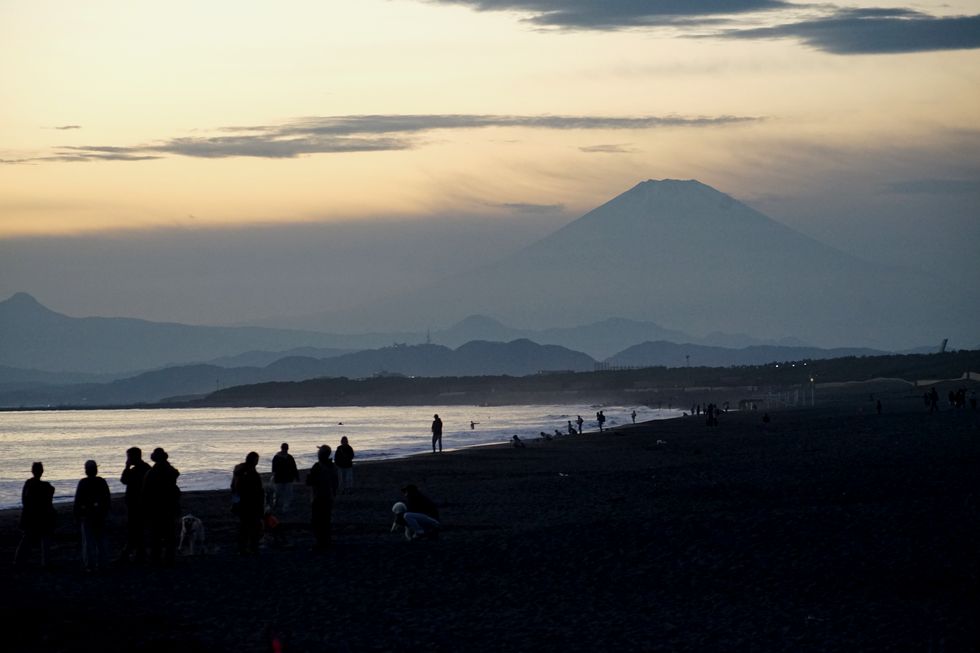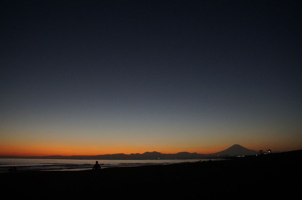 海岸夕景@辻堂海岸温かくなったので人出が多い、今日は夕焼けしない、雲が無く富士山は綺麗に見えている。 久しぶりにα7IIで撮影。 |
