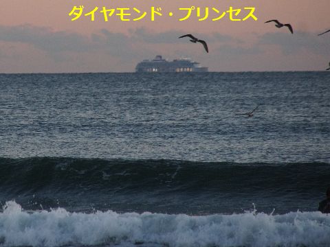 沖合にはダイヤモンドプリンセスが横浜港の出向予定をみると大黒埠頭から3時出航のダイヤモンド・プリンセス、次は秋田港へ行くよう。 |