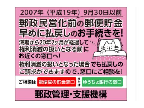 誠意の無い日本郵便の罪滅ぼし?黙って失効し国家の金になりそうな郵便貯金、やっと救済する仕組みが出来たようだが、また 天下りの組織が出来ただけ?善意でつけこむ油断大敵の好例。 |