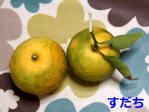 近所ですだちを貰ってきた近所の玄関前に「自由に持っていって」と箱に入って10個ほどあったので2個貰ってきた。 |