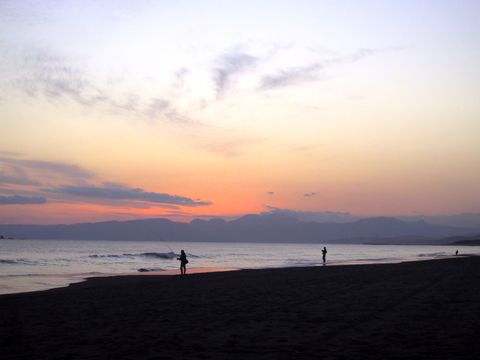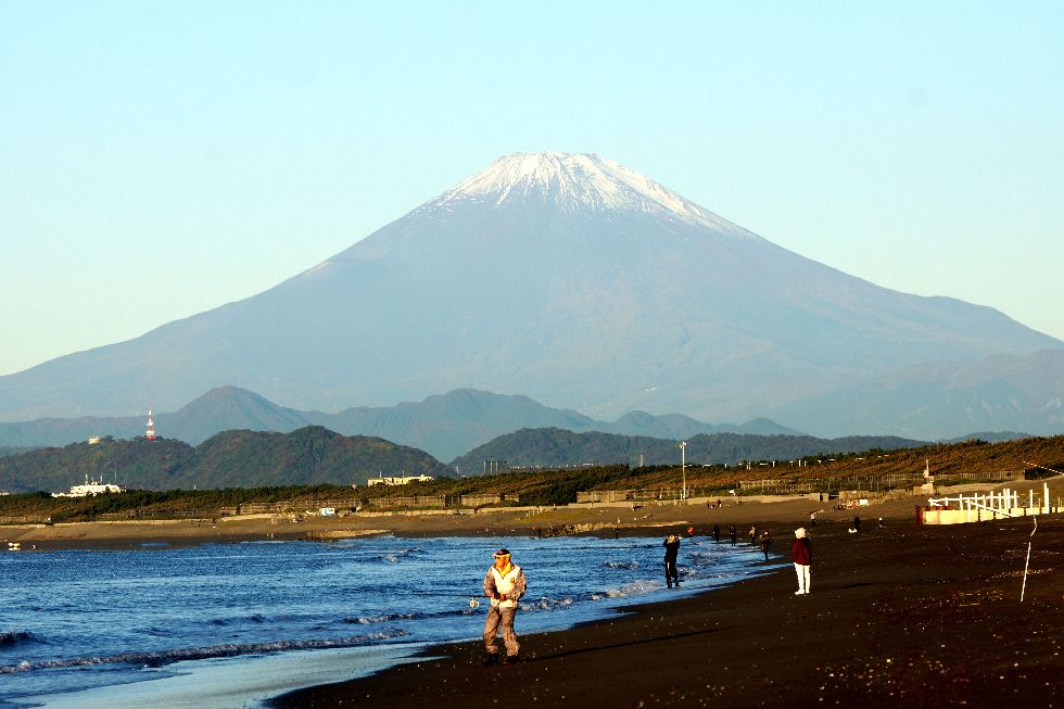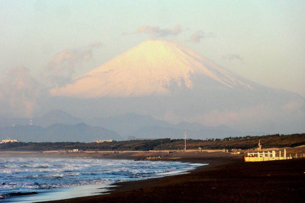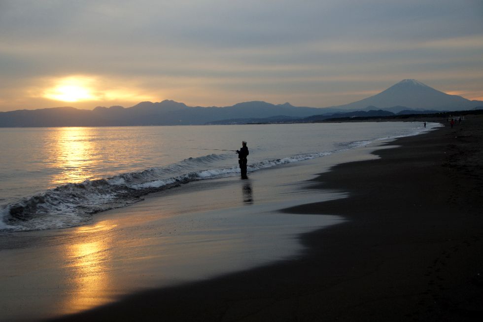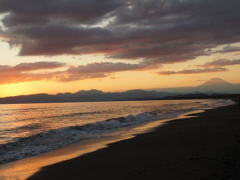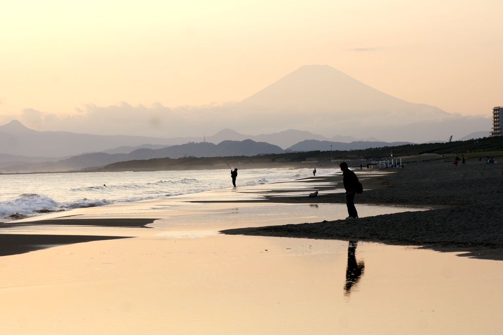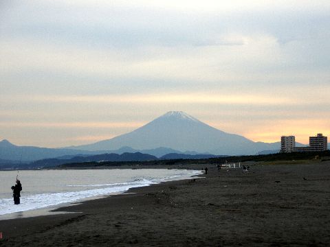 朝の辻堂海岸空がきれいなので朝7時過ぎから海岸まで出掛けた、波がほぼ無いのでサーファーは極少ない、 釣り人が結構いる。 |