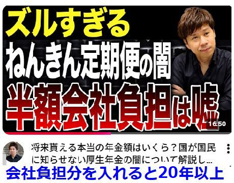 厚生年金受給、国民を騙している?支払った年金額が受給10年で元が取れて20年では2倍という表現だが企業負担分が計算に入っていない。 意図的に入れないのかは不明だが、入れると受給20年でやっと元が取れる計算、国民を騙している? |