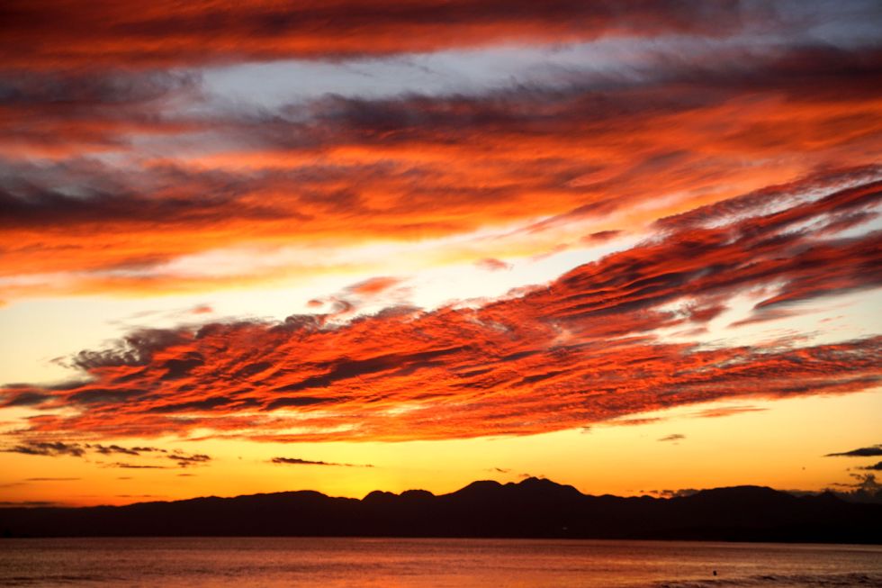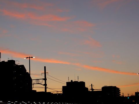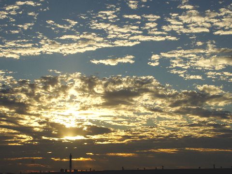 綺麗な夕焼けにはならない今日は昨日のような空が焼けるような夕焼けにはならず、残念。 |