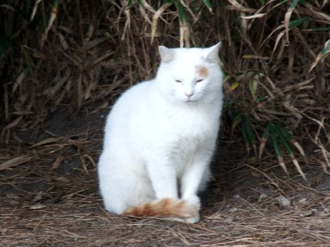 公園の地域猫エサをあげるおばさん達がいて、食べる物には困っていないよう。天気の良い日は河原?で日向ぼっこ。 |
