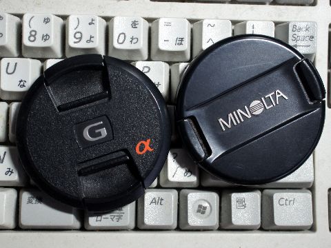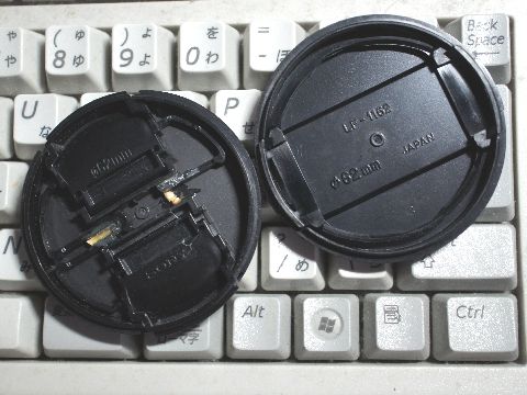レンズキャップ(SONYとMINOLTA)SAL70300Gのレンズキャップが破損(裏側のプラのばねが欠損、爪楊枝で修理)、代替のミノルタのキャップを ヤフオクで入手、裏側の構造が全く違う。 |