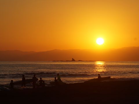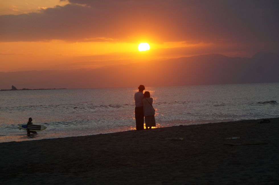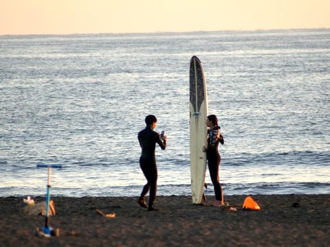 今日の海岸夕景ロングボードを持って記念撮影? |