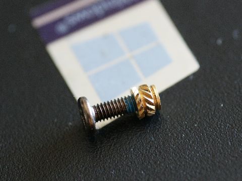 DYNABOOK B65/M 固定用埋め金剥がれ最近、何度か裏蓋を開けたが再組立て時にヒンジ部のネジ1本が閉まらない状態に、そのうち埋金具が ポロっと落ちてきた。こんなトラブルは大昔にSONYのノートPCで経験して以来。金具が小さすぎ、何度も 開閉することを想定していない強度設計? |