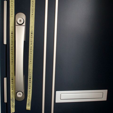 15年以上経過で各所変わっている一番外の網戸にはロックが付いた、いちいち解除して出るのは面倒くさいけど。玄関ドアも把手 形状が変化し引くタイプに変わった、ドア色や基本デザインは同じ。玄関キーを6本受け取り。 カメラ付きドアホンはケーブル切断で全くダメに、工事屋さんへの施工管理会社の完全な指示ミス。 |
